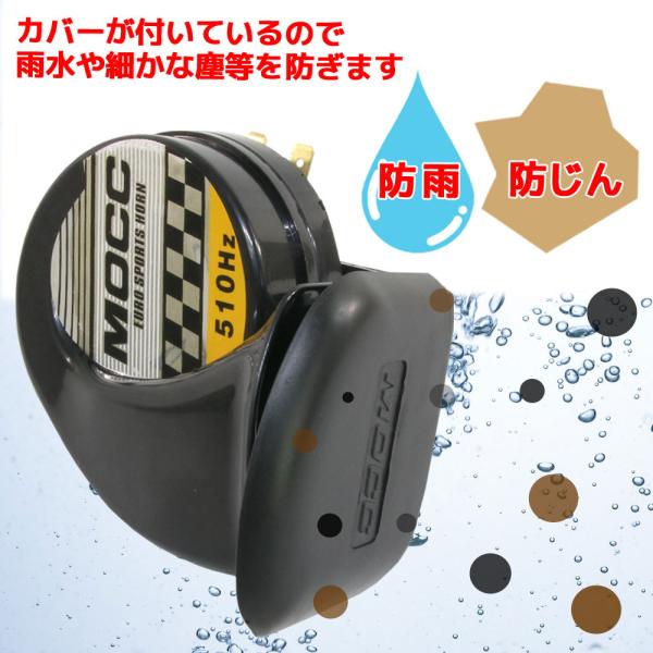 汎用 バイク ホーン ユーロホーン 車用ラッパ 警笛 シングル 黒 ブラック 軽量 小型 コンパクトサイズ DC12V大音量 低音 高音 510Hz 115dB 防雨 防塵 カバー付き