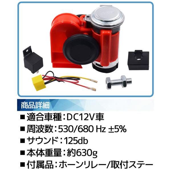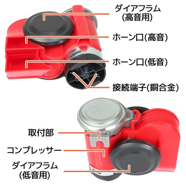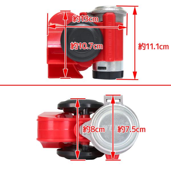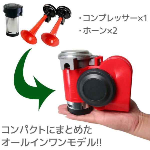 超大音量 バイク 2連 エアーホーン ダブル ホーン カタツムリ ポンプ 赤 レッド 12V用 ユーロホーン ユニット コンパクト サイレン 警笛 汎用 自動車 ボート 船