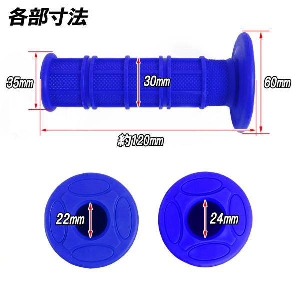 モトクロス グリップ オフロード 22.2mm ブルー 汎用 ハンドル 左右セット バイク オートバイ パーツ カスタム 交換 補修