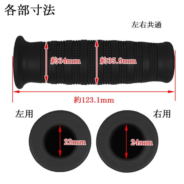 ラバーグリップ 22.2mm ブラック 汎用 左右セット カフェレーサー バイク カスタム パーツ 交換 補修 アクセル