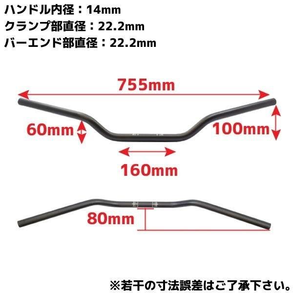 汎用 アルミ ハンドルバー 22.2mm 22.2パイ 22.2φ ブラック 黒 オンロード オフロード バイク オートバイ カスタム パーツ バーハン 7/8インチ ミリバー オフ車