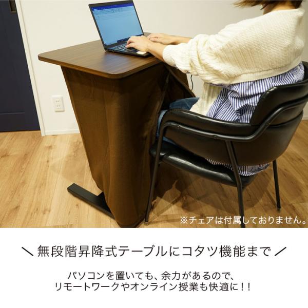 昇降こたつ 1人用 幅70cm ガス圧 昇降サイドテーブル ヒーター