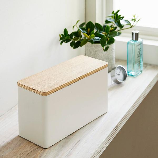 『 RIN( リン )サニタリー収納ケース 』はトイレで使う小物類をすっきり収納できるケース。サニタリー用品はもちろん小さなゴミ袋や使い捨てトイレブラシなどを入れるのにも便利。適度な大きさがあり仕切りも付いているので、毎日使う化粧品などを整理するコスメケースとして使うことも。ぬくもりある天然木とスチールを組み合わせたナチュラルシンプルなデザインも◎です。