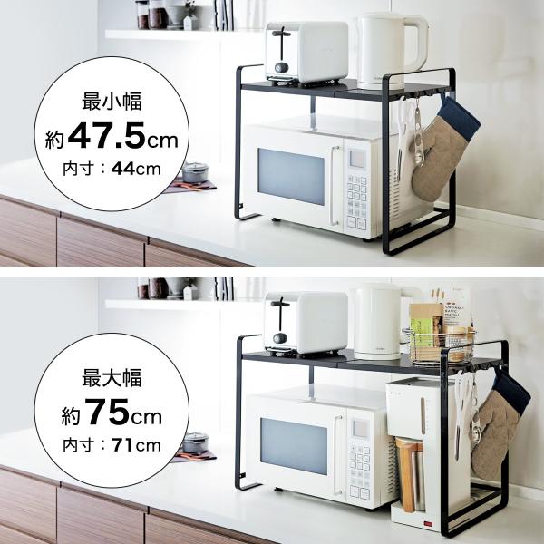 [ 伸縮レンジラック タワー ]山崎実業 tower 冷蔵庫上 レンジ上 収納 ラック 伸縮 レンジ台 レンジ 上 yamazaki 公式 ホワイト ブラック 3130 3131