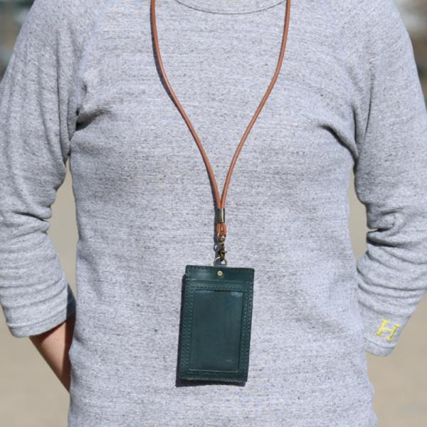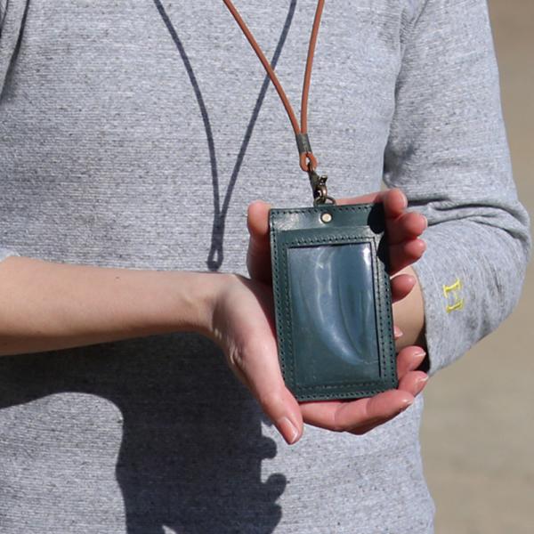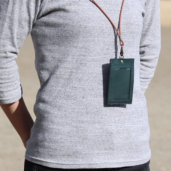 IDカードケース 縦型 首掛け ネックストラップ 社員証 名札 カードホルダー パスケース ICカード 通勤 通学 ビジネス 本革 イタリアレザー 日本製 ギフト 名入れ