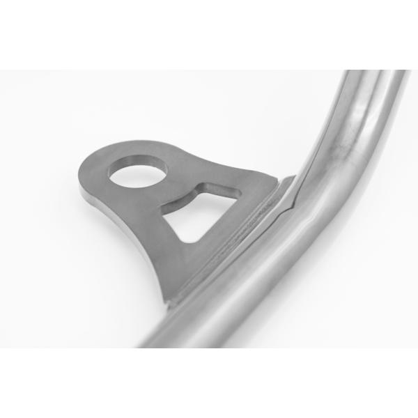 ●3Dベンダーで正確に曲げられたスチールパイプは、クラシカルイメージを存分に発揮させた重厚感溢れるクロームメッキ仕上げに加え、透明感のある漆黒を帯びたメタル基調の漆黒メッキ仕上げ、クールで車両全体に引き締まった印象を与える強靭なパウダーコートのペイントブラック塗装仕上げに加え、深みのある黒が輝くブラッククロームの4ラインナップ。