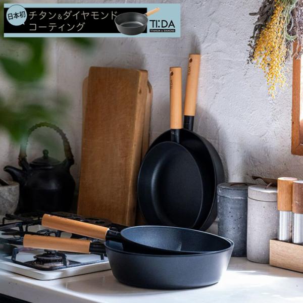 ●TI:DA(ティーダ)シリーズは、おしゃれで機能的なフライパンです。鉄のように黒いコーティングとナチュラルなハンドル(取っ手)で見た目もおしゃれ。お手入れ簡単・キズに強い・熱伝導が良い・オール熱源対応。