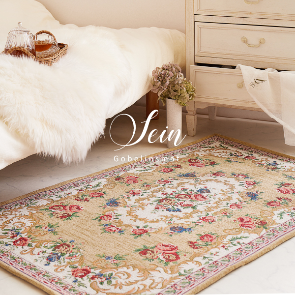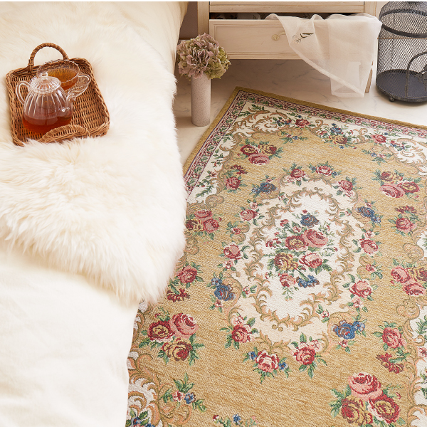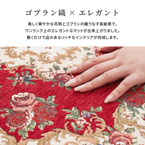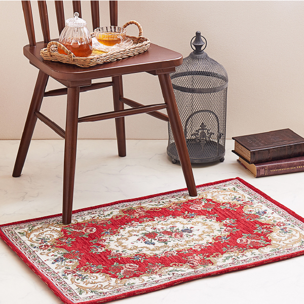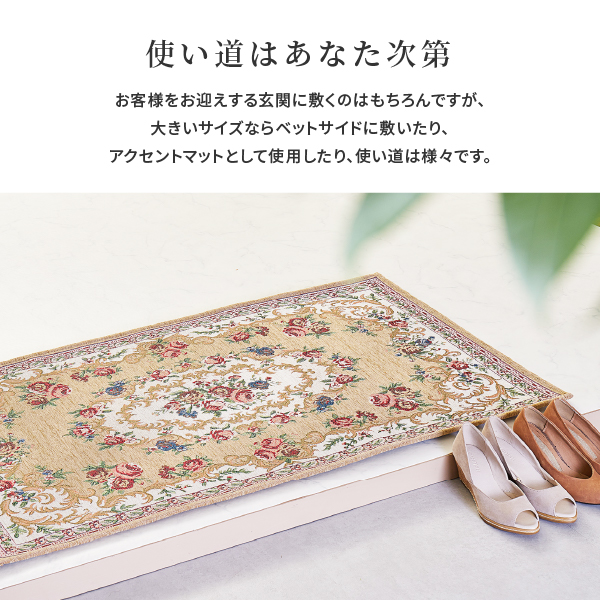 玄関マット 室内マット 玄関 室内 マット 68×120cm 大判 大きめ ゴブラン 絨毯柄 花柄 クラシカル おしゃれ 洋風 赤 ベージュ ザイン