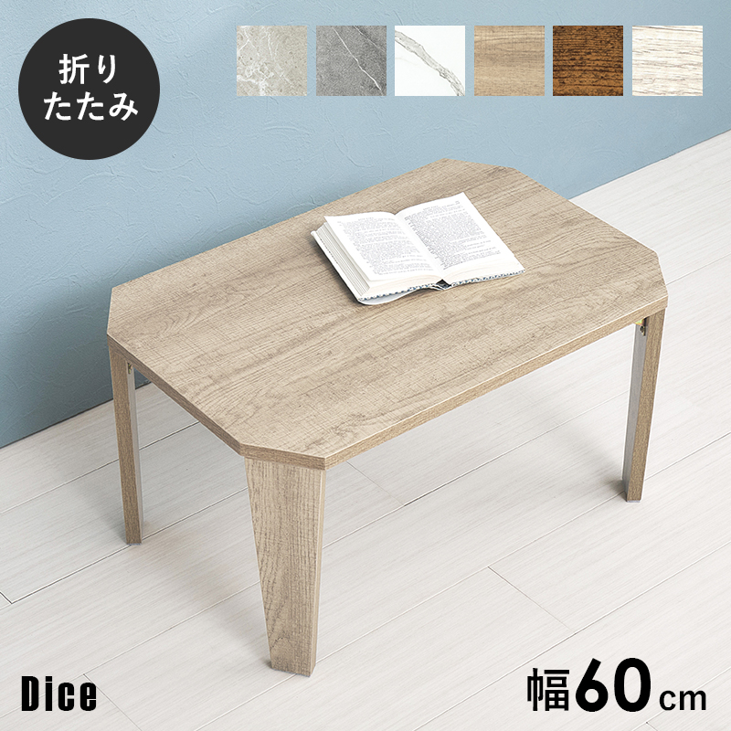 折りたたみテーブル テーブル 折りたたみ おしゃれ ローテーブル センターテーブル サイドテーブル リビングテーブル 小さい 軽量 机 幅60cm Dice ダイス