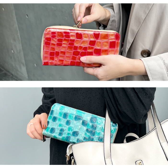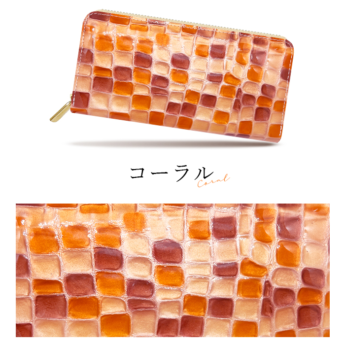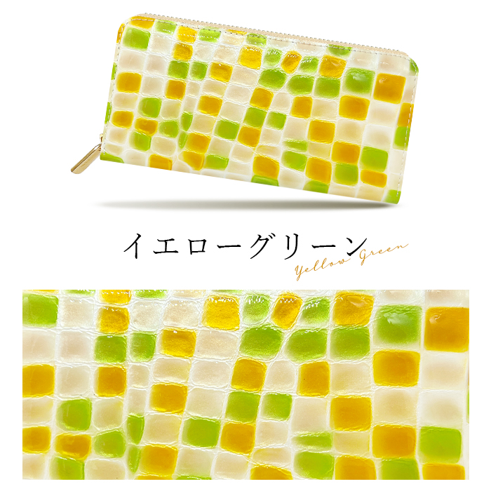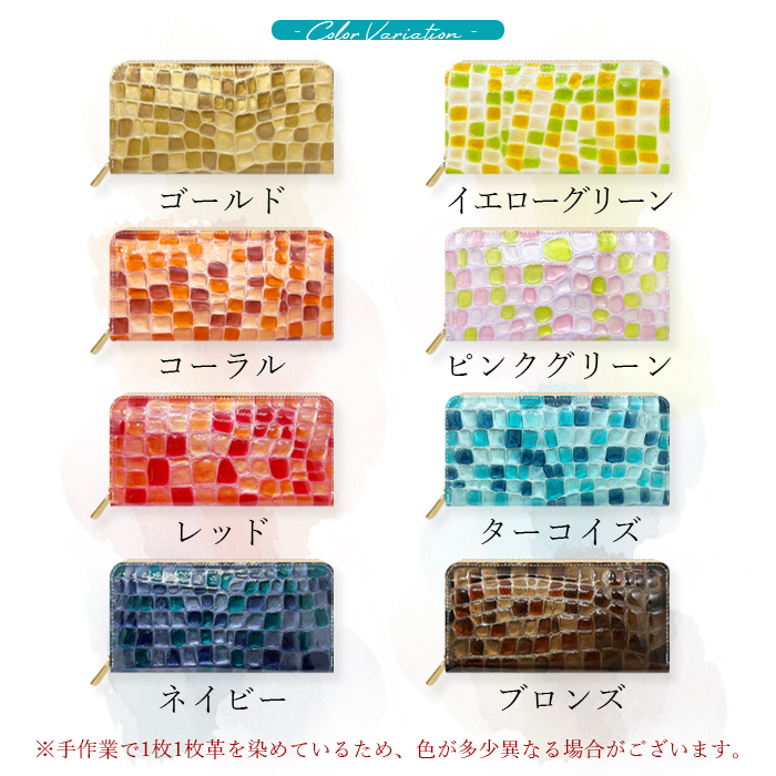長財布 レディース 財布 本革 上品な ステンドグラス エナメル ラウンドファスナー サイフ さいふ ウォレット 革 牛革 レザー カード収納 革財布 ラウンド長財布