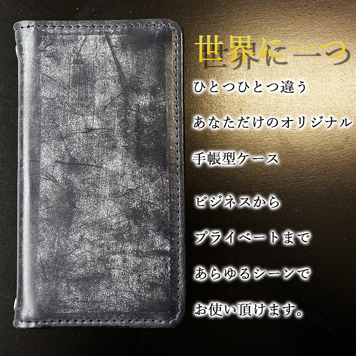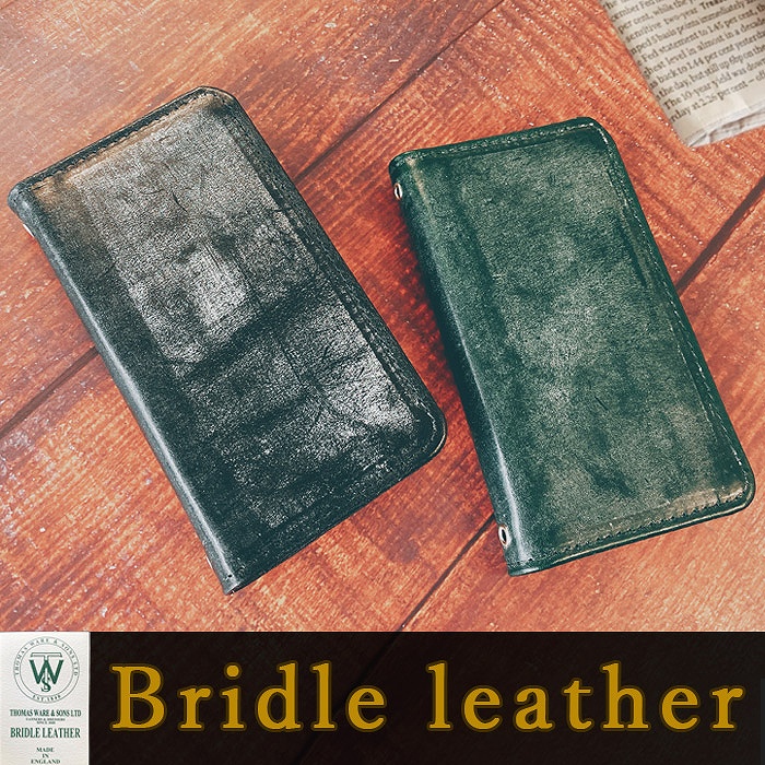 ・ 英国製 ブライドルレザー 本革 手帳型ケース(内側:黒TPU ケース)
