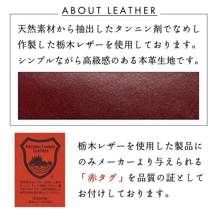 日本を代表する最高峰の革【栃木レザー】を使用しております。