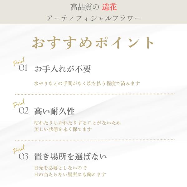 耐久性に優れお手入れも簡単、もちろん水やりも不要です。
