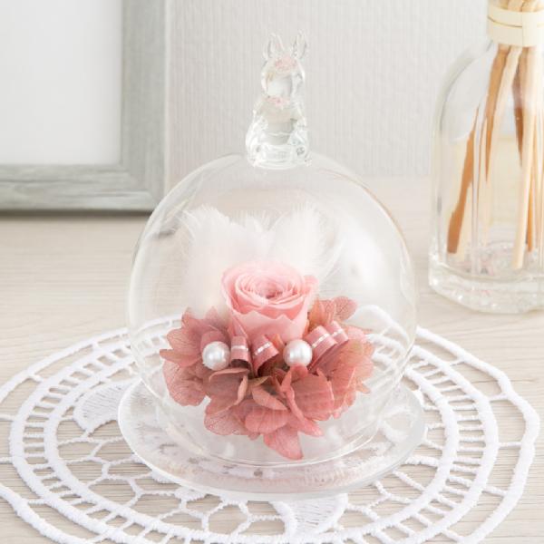 プリザーブドフラワー ギフト 花 シュシュラパン ガラスドーム うさぎ おしゃれ 誕生日 結婚祝い 退職祝い プリザードフラワー プレゼント 母の日