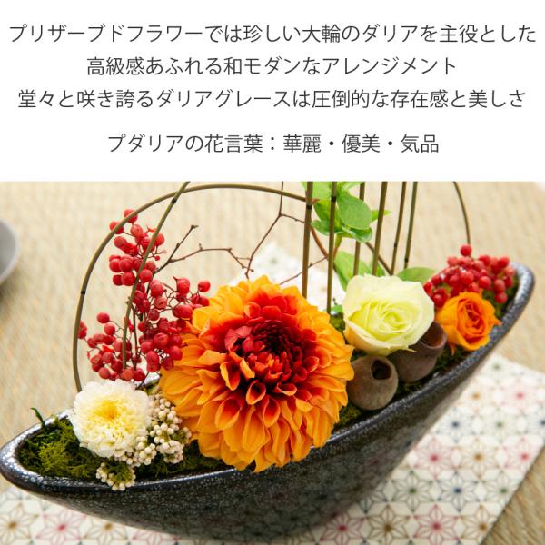 プリザーブドフラワーでは珍しい大輪のダリアを主役とした高級感あふれる和モダンなアレンジメント