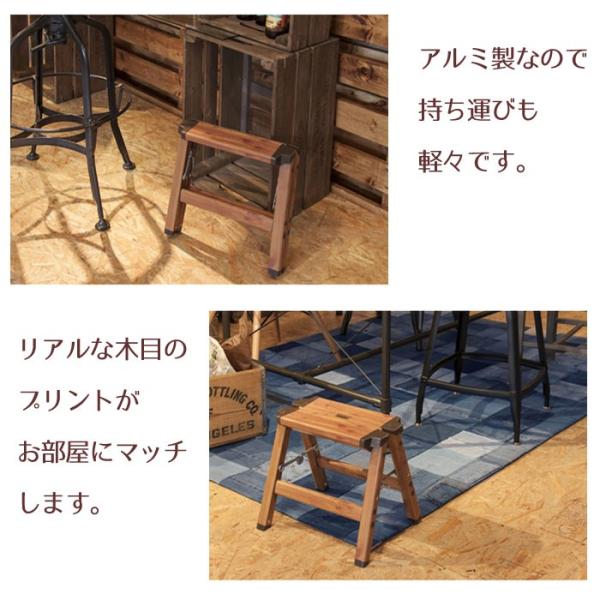 本格木目プリントがおしゃれな、アルミ製ステップツールです。