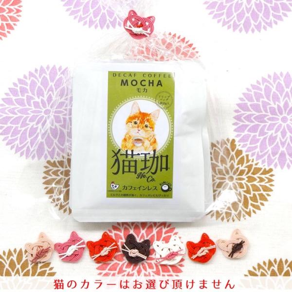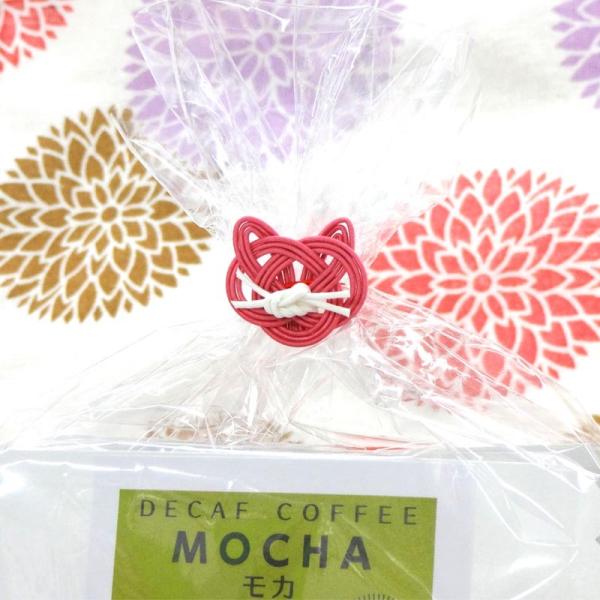 猫珈 カフェインレス コーヒー ラッピングセット ネコの水引がかわいい プレゼント ギフトに ドリップパック4個セット おしゃれで ドリップバッグ デカフェ