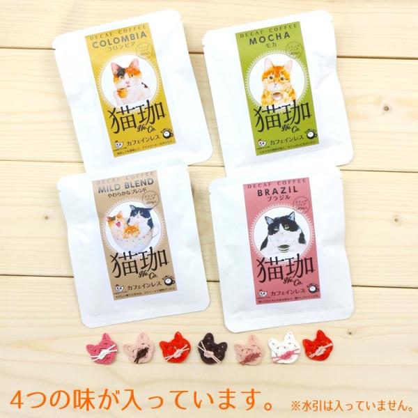 愛らしいネコのパッケージでお届けするドリップタイプのカフェインレスコーヒーを