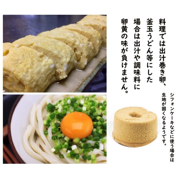 料理では出汁巻き卵、釜玉うどん等にした場合は出汁や調味料に卵黄の味が負けません。