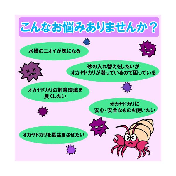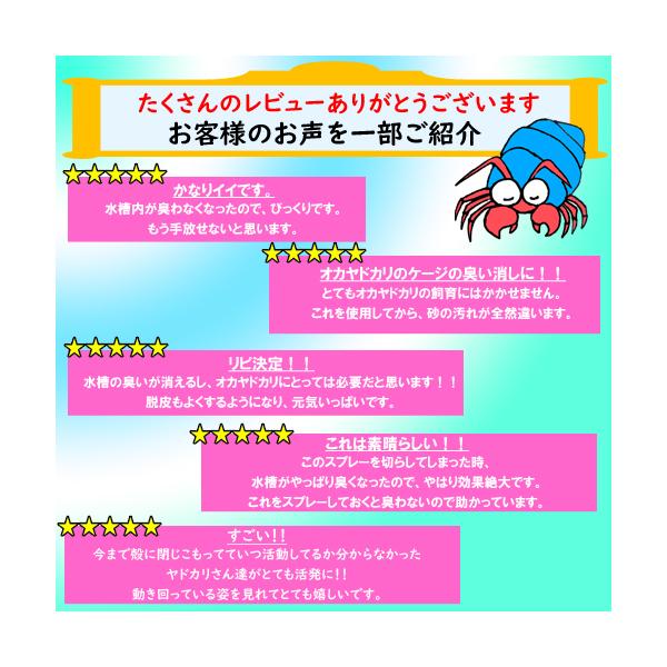おかやどかり 水槽 アクアリウム アクア用品 飼育用品 清潔 ダニ 安心 天然成分 バクテリア 消臭 脱臭 スプレー塩分 海水魚 アクアリウム プール ポイント消化
