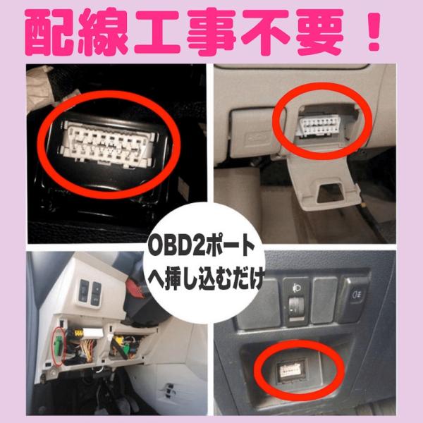 OBD2ポートへポン付けするだけの簡単設置。従来の配線式車両電源型の配線をする知識がない方にも簡単にご利用いただけます。