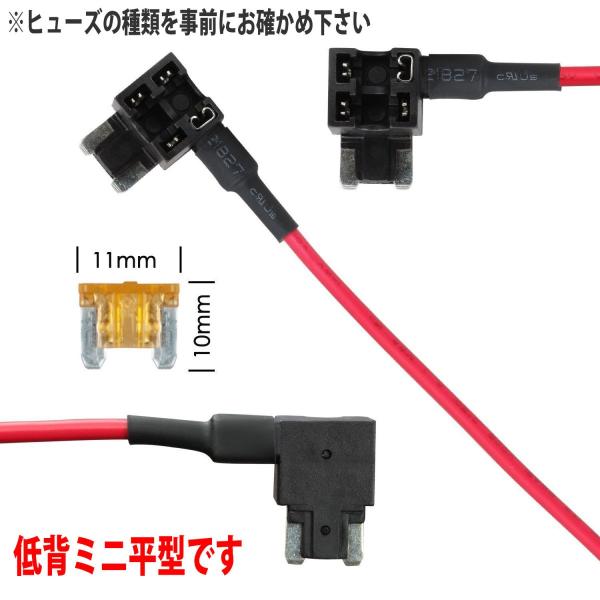ドライブレコーダー用 駐車監視対応 常時電源取り出しケーブル ヒューズ付き(低背)車載 micro USB端子