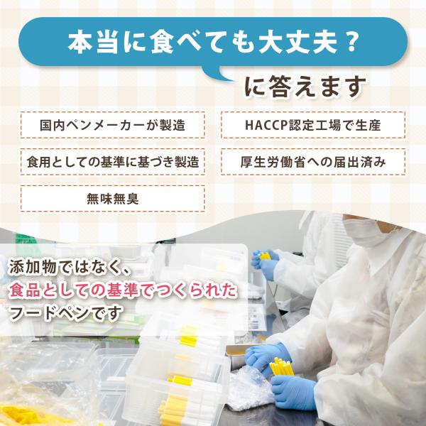 食品に使える日本製のフードペンです。キャラ弁、デコ弁、オブアート、アイシングクッキーやお菓子に絵やメッセージが書けます。原材料:水、エタノール/グリセリン、着色料(青1,黄4,赤40,赤102,赤106)、乳酸ナトリウム、pH調整剤(クエン酸)