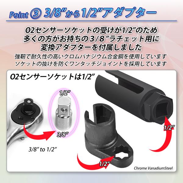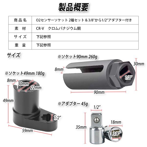 【O2センサソケットレンチ2個セット + 3/8から2/1変換ソケット付き】