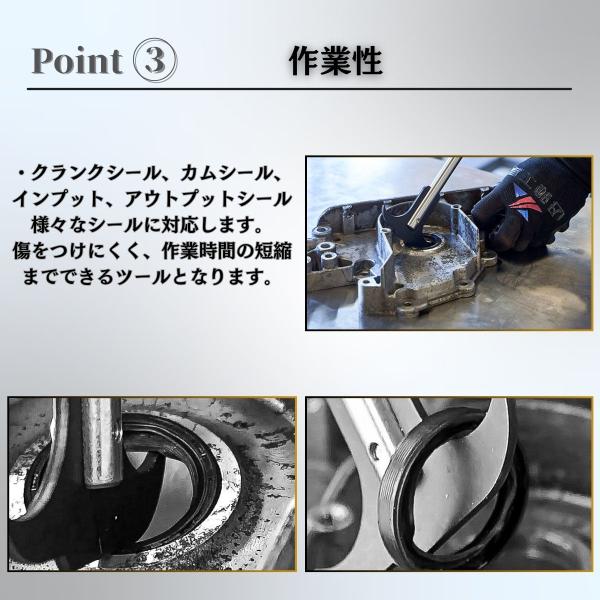 オイルシールやダストシールなどを、てこの原理を利用して簡単に取り外せる専用工具です。