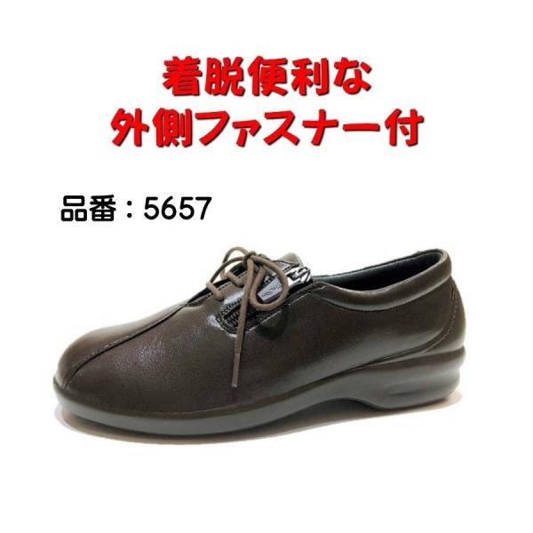ボンステップ Bon Step レディース 靴 タウンウォーキングシューズ 品番 5657 幅 4E 外側ファスナー付 羊革 日本製 大塚製靴 外反母趾対応