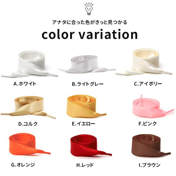 リボン 靴紐 「おしゃれな18色」左右セット 120cm 滑らかサテンリボン 可愛い 平紐 靴ひも 靴ヒモ