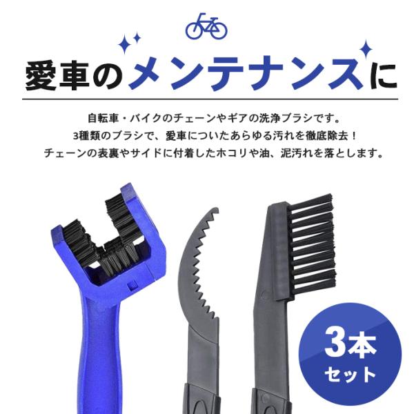 バイク チェーンブラシ 「3点セット」三面ブラシ ギアブラシ 刷毛 フック 自転車 オートバイ クリーニング 清掃
