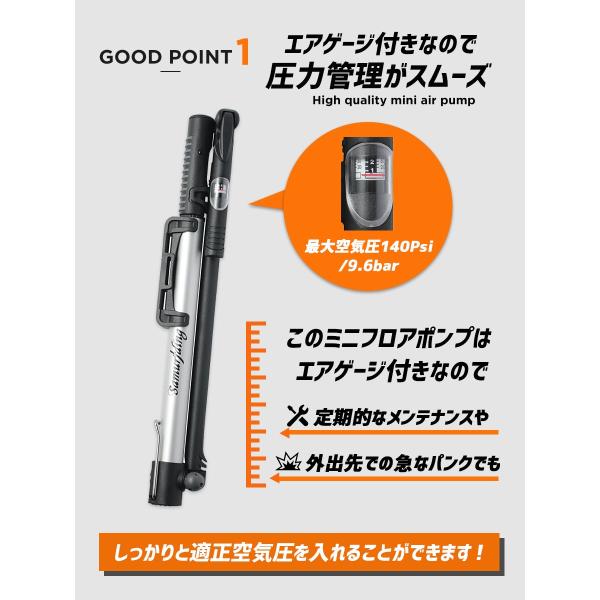 自転車 空気入れ ロードバイク クロスバイク samuriding サムライディング 携帯型 アルミ ミニフロアポンプ MTB ピスト ミニベロ SIG-FP004 あすつく 送料無料