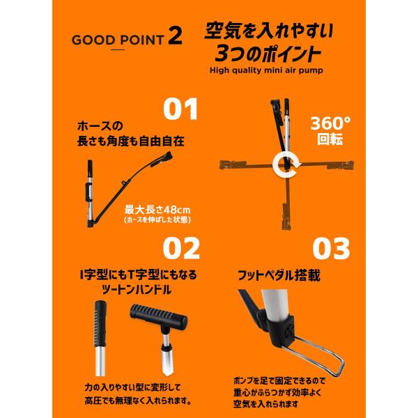 ・コンパクトで使いやすいエアゲージ付きミニフロアポンプ