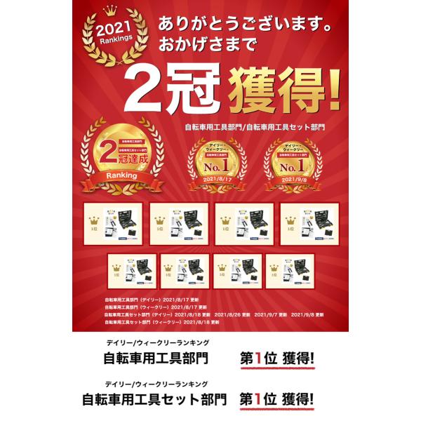 【専用ケースで収納・持ち運びに便利】自転車工具をピッタリ収納できるケース付き。箱の中でバラバラにならず、紛失の心配がありません。持ち運びもらくらくできます。 ●本体サイズ:約33cmx27cmx8cm(ケース含む) ●重量:約2,940g(ケース含む)