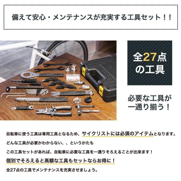 【初心者から玄人にも対応したセット内容】自転車 メンテナンスには専用の工具が必須となります。ペダルレンチ、スプロケット外し、チェーンカッターなどの様々なパーツや用途に対応した自転車用ツールが全27点。携帯しておくと安心なパンク修理キットやタイヤレバーも付属しています。