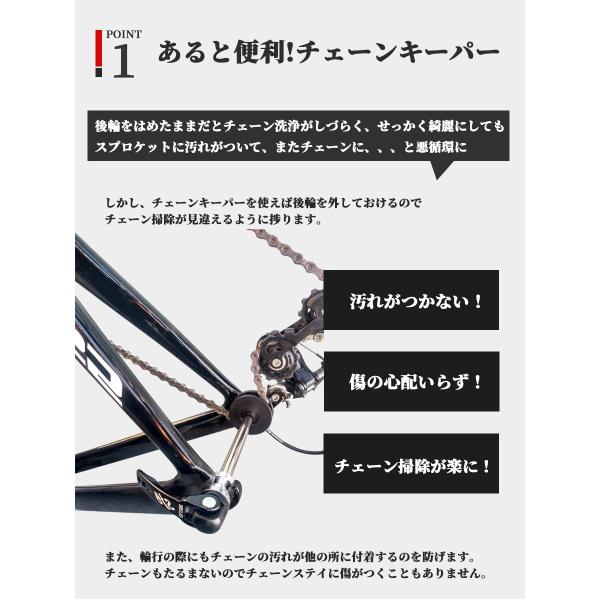 ・チェーンキーパーを使えば後輪を外しておけるのでチェーンの掃除がはかどり、輪行の際にもチェーンの汚れが他の所につくのを防げます。