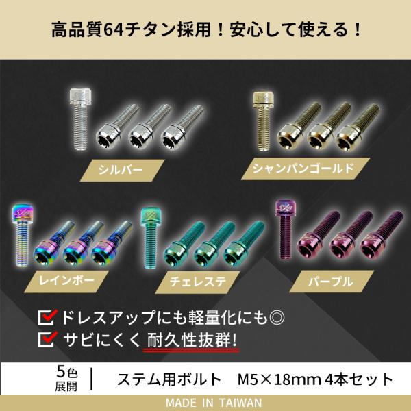 【チタン ボルト】Samuriding サムライディング M5×18mm チタン ボルト ステム用など 4本セット sig-st004 クリックポスト