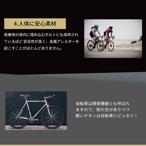 軽い・さびにくい・高強度・人体に安心素材という特徴があり自転車パーツとの相性がいい高品質な金属です。