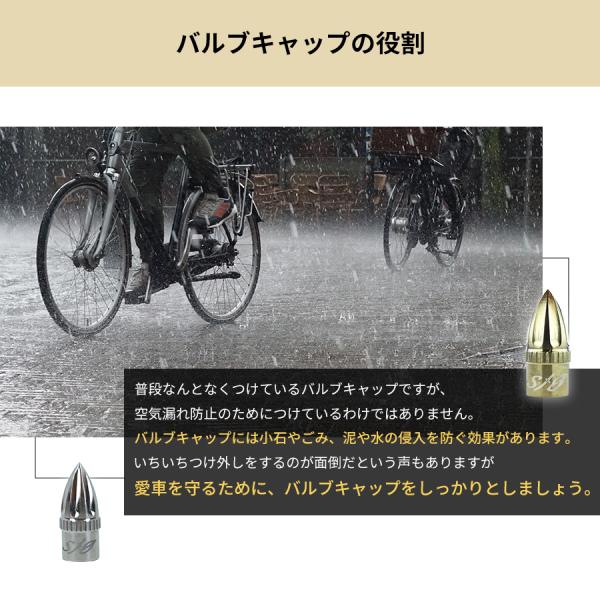 小石やゴミ、泥や水などの侵入を防ぐためのものです。愛車を守るためにも、バルブキャップをしっかりとしましょう。