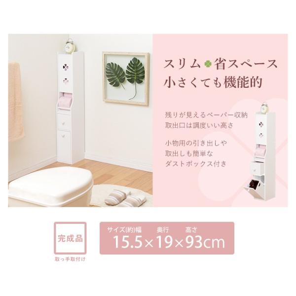 トイレラック スリム ホワイト ピンク 完成品 省スペース おしゃれ トイレットペーパー収納 15.5cm 新生活