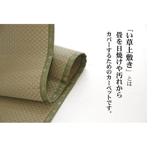 珍しい(ヘリ際のみ)市松柄の上敷きです。上敷きを敷くだけで畳のお部屋をリフレッシュ出来ます。日焼けしてしまった畳のリフレッシュに、新品の畳を汚さないためのカバーにご使用下さい。