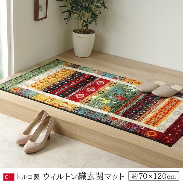 玄関マット 120 室内 屋内 約 70×120cm おしゃれ ウィルトン トルコ製 抗菌 防臭 消臭 ギャベ ギャッベ エスニック カービング 北欧 ヘタりにくい 安い