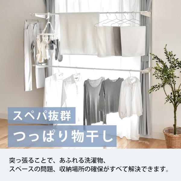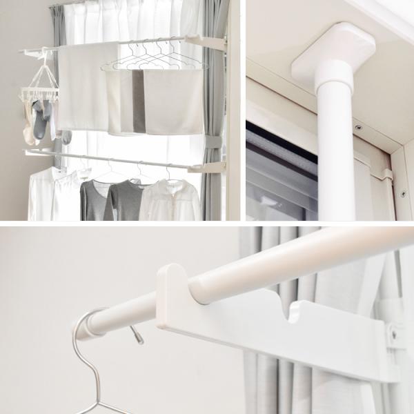 突っ張り物干し 窓枠物干し 物干しスタンド 室内物干し 洗濯物干し 省スペース 収納 つっぱり 伸縮自在 スぺパ シンプル 浮かせる 窓枠 壁際 ekans エカンズ
