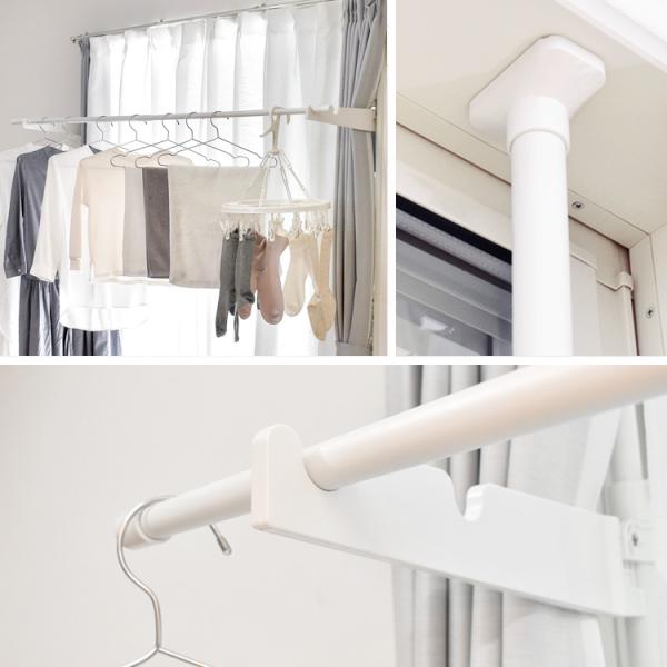 突っ張り物干し 窓枠物干し 物干しスタンド 室内物干し 洗濯物干し 省スペース 収納 つっぱり 伸縮自在 スぺパ シンプル 浮かせる 窓枠 壁際 ekans エカンズ