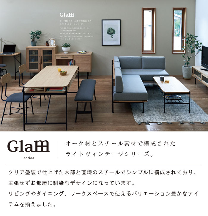 オーク材とスチール素材のシンプルな構成ながらヴィンテージ感が漂い、主張せずお部屋になじむデザインとなっています。