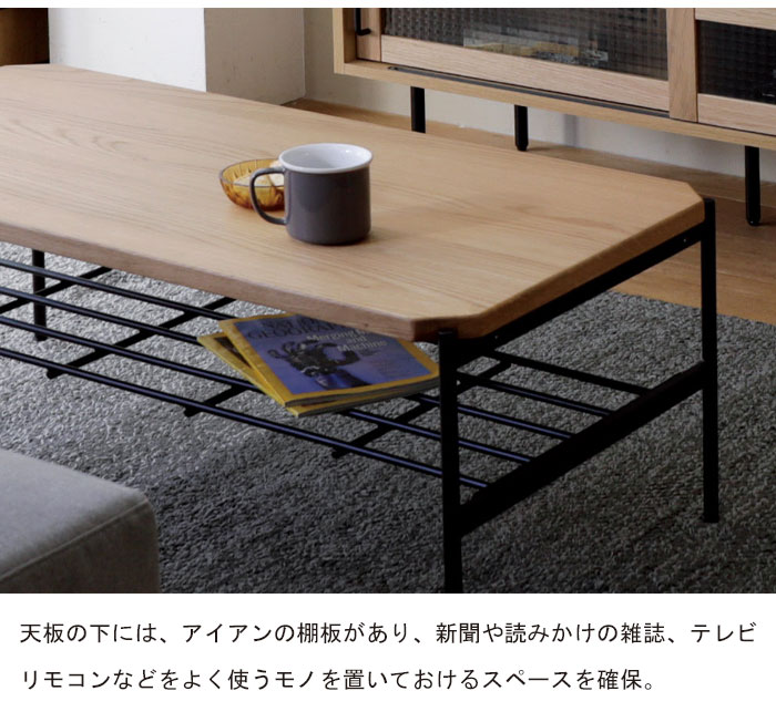 切り落とした4つ角がアイコンの棚付きセンターテーブルです。