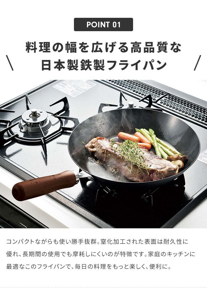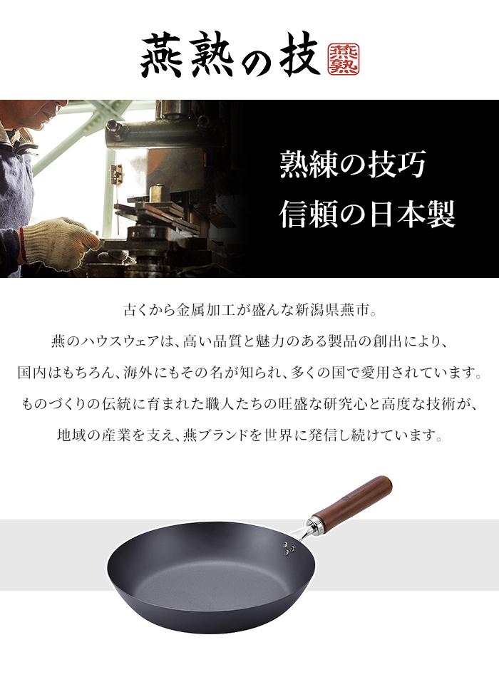 燕熟の技 フライパン 26cm 窒化加工 日本製 鉄製 IH/ガス 両用 ガス火 IH対応 キッチン用品 高耐久性 大型サイズ 鉄鍋 鉄フライパン 調理鍋 化粧箱入り IH対応 ガス火対応 窒化鉄 サビに強い 木製取っ手 調理器具 料理 お弁当 朝食 鉄分接種 貧血予防 日本製 おしゃれ キッチン用品