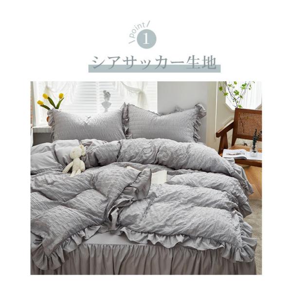 [新発売]布団カバー セット 3/4点セット 掛け布団カバー 可愛い フリル シアサッカー生地 肌にやさしい 通気性 ベッドスカート 枕カバー 洗える 通気性