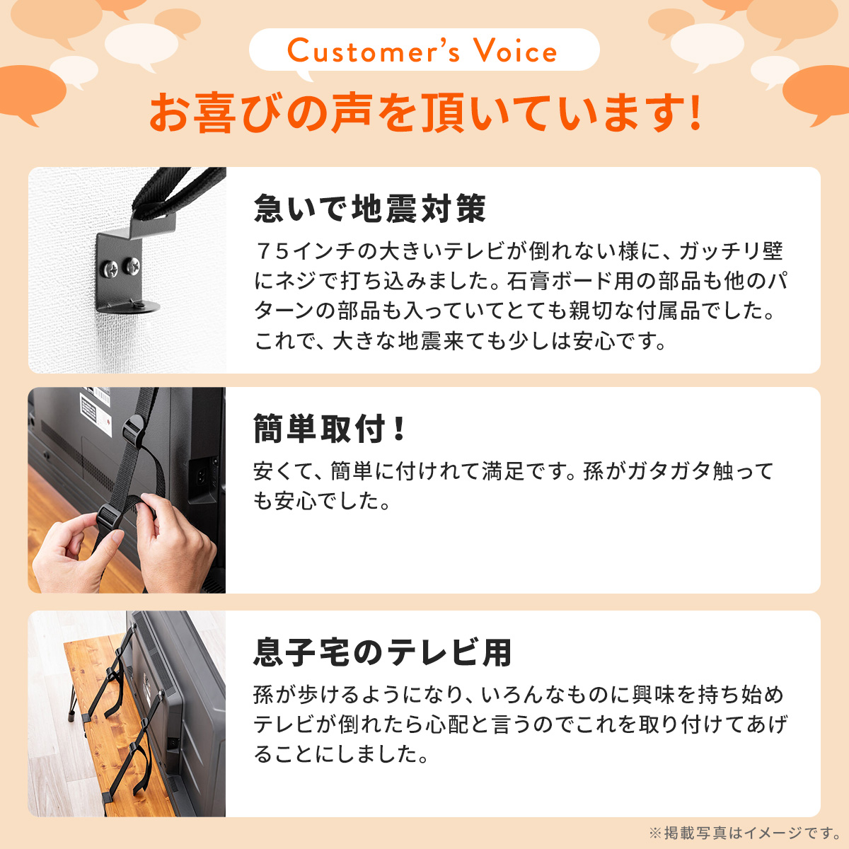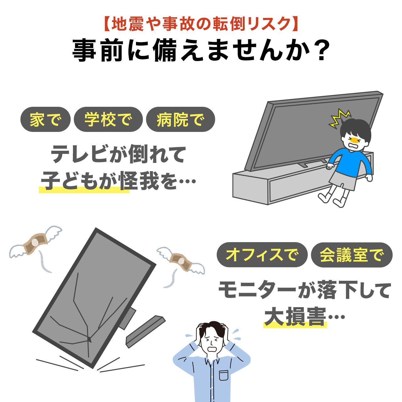 関連キーワード:サンワサプライ サンワダイレクトが販売 耐震 地震対策 大地震 備え 防災 防災グッズ 震災 大震災 防災用品 転倒防止 耐震グッズ クランプ式 VESA 取り付け テレビ転倒防止ベルト 壁固定対応 テレビ台 100-PL036BK 100-PL036W ブラック ホワイト